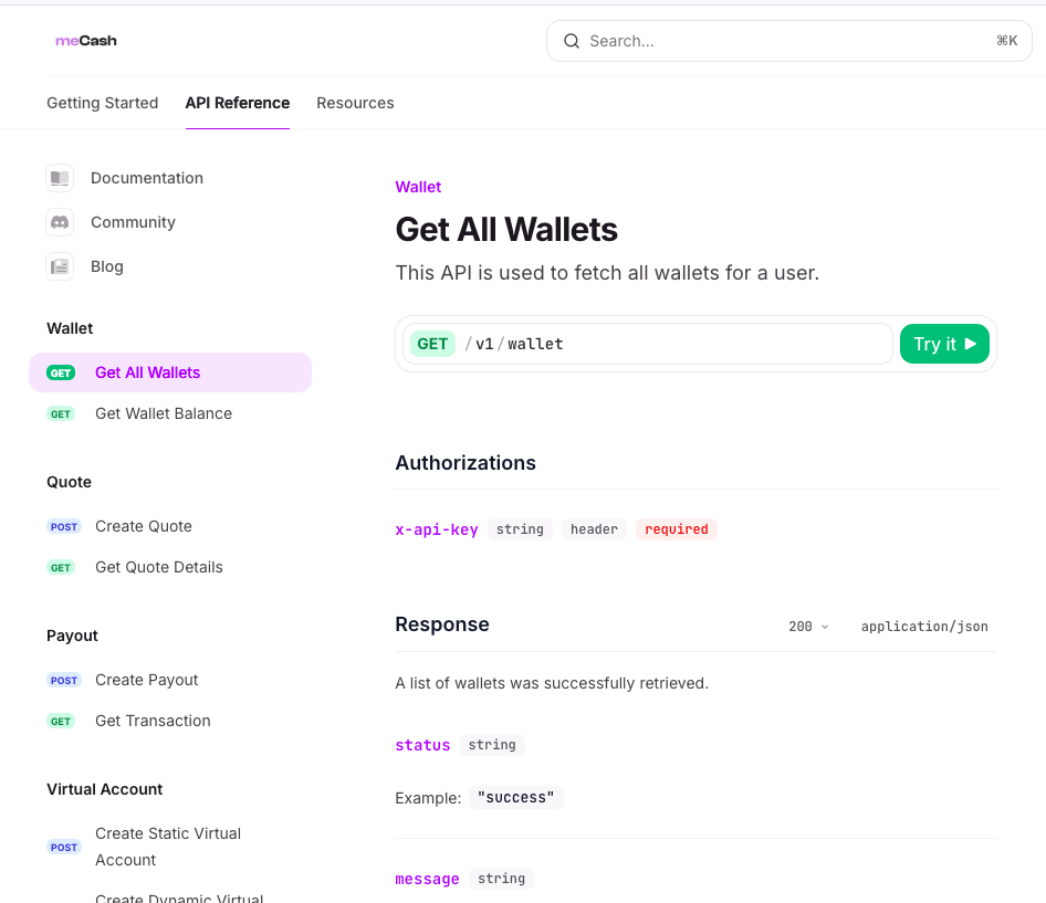 Want to try it out? Visit the meCash Developer Sandbox to test APIs safely before going live. It’s an interactive environment where your team can simulate real transactions end to end.